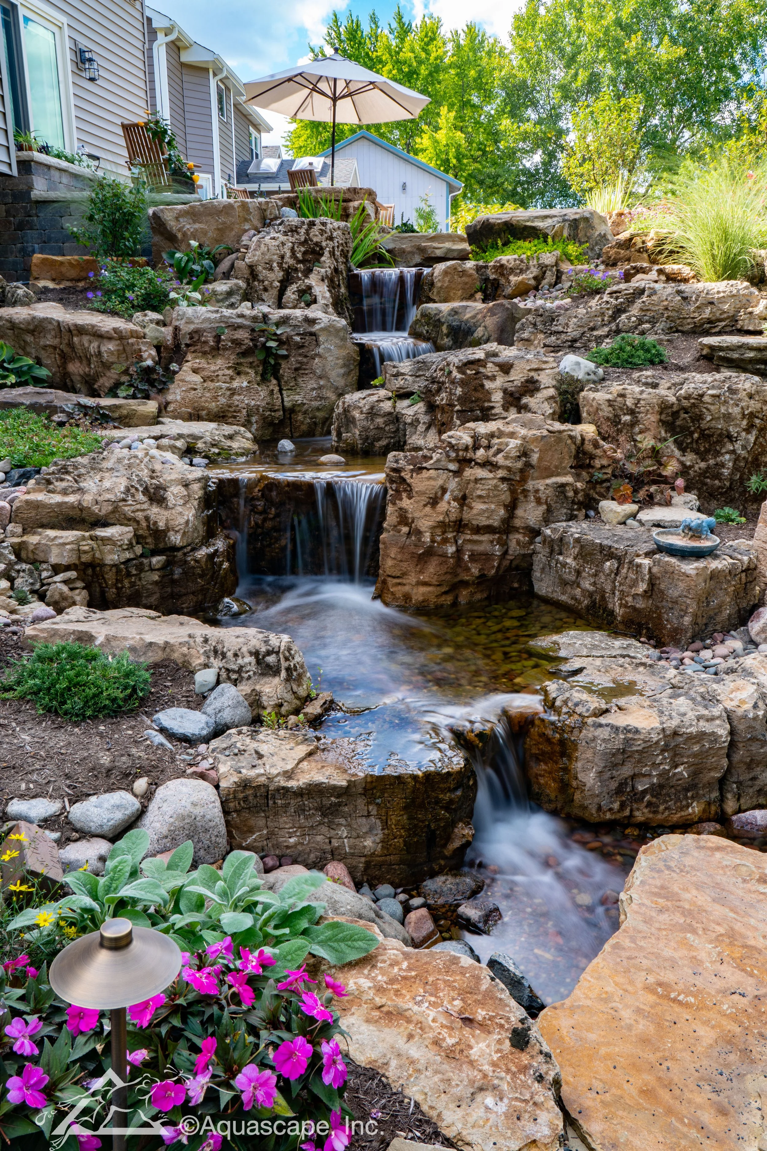 A water feature transforms an ordinary yard into a peaceful, living landscape. Whether it’s a bubbling fountain, a cascading waterfall, or a koi pond, moving water adds beauty, sound, and a sense of calm that people naturally love. It creates a space where you can relax, unwind, and enjoy nature right outside your door.